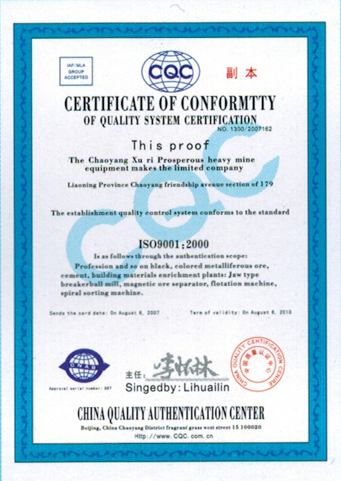 質(zhì)量管理體系證書